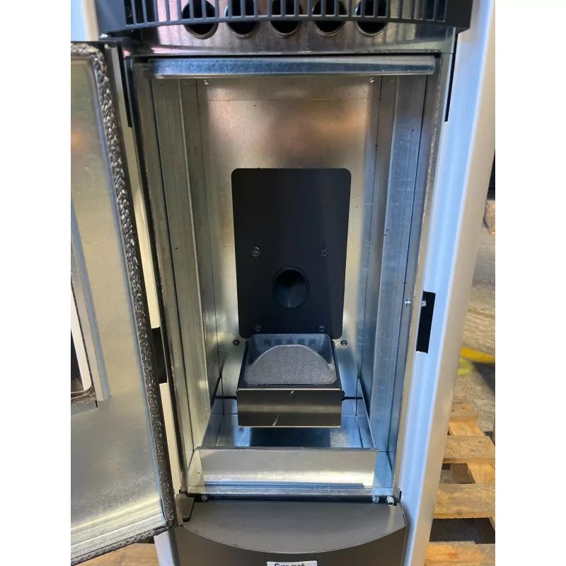 La Giuliana 9 kW es una estufa de pellets estanca que destaca por su alto rendimiento (>90%), su gran autonomía (hasta 24 h) y su capacidad de calentar superficies de hasta 113 m². Gracias a su salida de humos superior, permite ahorrar espacio y se integra fácilmente en cualquier habitación.